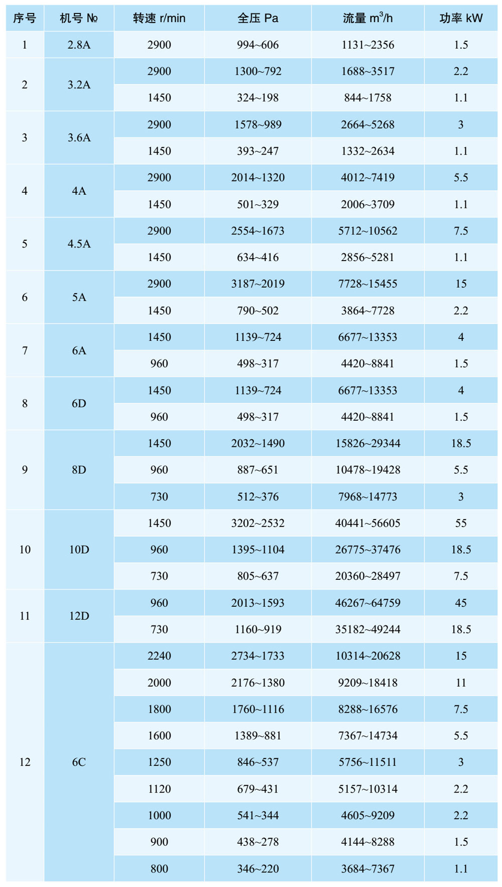 4-72系列风机主要由叶轮、机壳、进风口、电机等部分组成,№6C和№8--20除具上述结构外,还有传动部分,具有效率高、噪音低、性能曲线平稳特点。